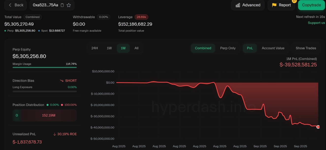 Lookonchain์ ๊ฑฐ๋์๊ฐ ์์ฐ์ด ๋ฐ๋ฑํ๊ธฐ ์ ์ ์ฝ 900,000๊ฐ์ ํ ํฐ์ ๋งค๋ํ ํ Hyperliquid(HYPE)์์ ๊ฑฐ์ 4์ฒ๋ง ๋ฌ๋ฌ์ ์์ค์ ์ ์ ๋์ ๋ ๋ฒ๋ฆฌ์ง ๊ฑฐ๋๋ฅผ ํ๋ค๊ณ ๋ฐํ์ต๋๋ค.