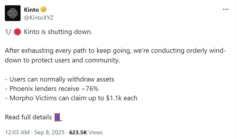 Kinto๋ ํดํน ํ ๋ช ๋ฌ ๋์ ETH L2๊ฐ ์ข ๋ฃ๋ ์์ ์ด๋ฏ๋ก 81% ๊ธ๋ฝํ์ต๋๋ค.