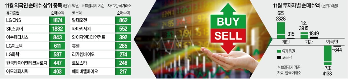 ์˜ฌ ํ•˜๋ฐ˜๊ธฐ ์ฝ”์Šคํ”ผ์ง€์ˆ˜ ์ƒ์Šน์„ธ๋ฅผ ๊ฒฌ์ธํ•œ ์™ธ๊ตญ์ธ ํˆฌ์ž์ž๋“ค์ด ๋Œ€๊ทœ๋ชจ ๋งค๋ฌผ์„ ์Ÿ์•„๋‚ด๊ณ  ์žˆ๋‹ค. ์ธ๊ณต์ง€๋Šฅ(AI) ํˆฌ์ž ์—ดํ’์— ๋Œ€ํ•œ ๋ฒ„๋ธ” ์šฐ๋ ค์™€ ๋ฏธ๊ตญ ์ •๋ถ€ ์…ง๋‹ค์šด(์ผ์‹œ์  ์—…๋ฌด ์ •์ง€) ๋ฆฌ์Šคํฌ๊ฐ€ ๋งž๋ฌผ๋ฆฌ๋ฉฐ ๋‹จ๊ธฐ ๊ธ‰๋“ฑํ•œ ํ•œ๊ตญ ์ฆ์‹œ์—์„œ ์ฐจ์ต ์‹คํ˜„์— ๋‚˜์„  ๊ฒƒ์ด๋‹ค. ์ฆ๊ถŒ๊ฐ€์—์„  ๋Œ€๋Ÿ‰ ๋งค๋„ ํ–‰๋ ฌ ์†์—์„œ๋„ ์™ธ๊ตญ์ธ์ด ์‚ฌ๋“ค์ธ ์ข…๋ชฉ์„ ์‚ดํŽด๋ณด๊ณ  ์ž๊ธˆ ํ๋ฆ„์„ ๋ˆˆ์—ฌ๊ฒจ๋ณด๋ผ๋Š” ์กฐ์–ธ์ด ๋‚˜์˜จ๋‹ค.