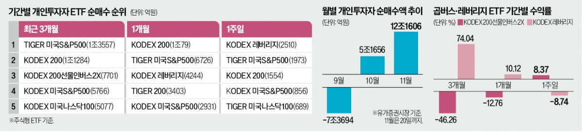 ๊ฐ์ธํฌ์์๋ ์ค์ ๋ก ETF ์์ฅ๋ฟ๋ง ์๋๋ผ ์ ๊ฐ์ฆ๊ถ์์ฅ ์ ์ฒด์์๋ ๋งค๋ฌผ์ ๋ฐ์๋ด๊ณ ์๋ค. ์ง๋ 9์ 7์กฐ3694์ต์์ด์น๋ฅผ ์๋งค๋ํ ๊ฐ์ธ์ ์ง๋๋ฌ์ 5์กฐ1656์ต์ ์๋งค์๋ก ๋์์ฐ๋ค. ์ธ๊ณต์ง๋ฅ(AI) ๊ฑฐํ๋ก ์ด ์ผ๋ฉฐ ์กฐ์ ์ฅ์ธ๊ฐ ๋ณธ๊ฒฉํํ ์ด๋ฌ ๋ค์ด 20์ผ๊น์ง 12์กฐ1606์ต์์ด์น ์ฃผ์์ ์ฌ๋ค์๋ค.
