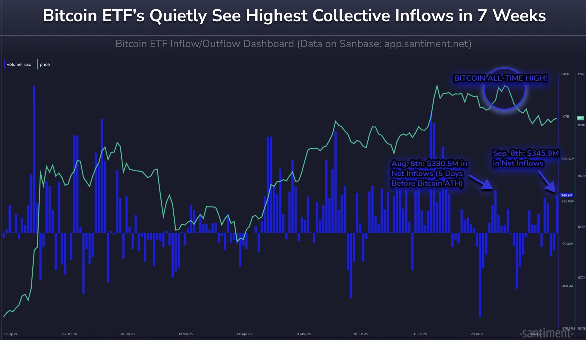 ํ˜„๋ฌผ ๋น„ํŠธ์ฝ”์ธ ETF ํ๋ฆ„. ์ถœ์ฒ˜: Santiment