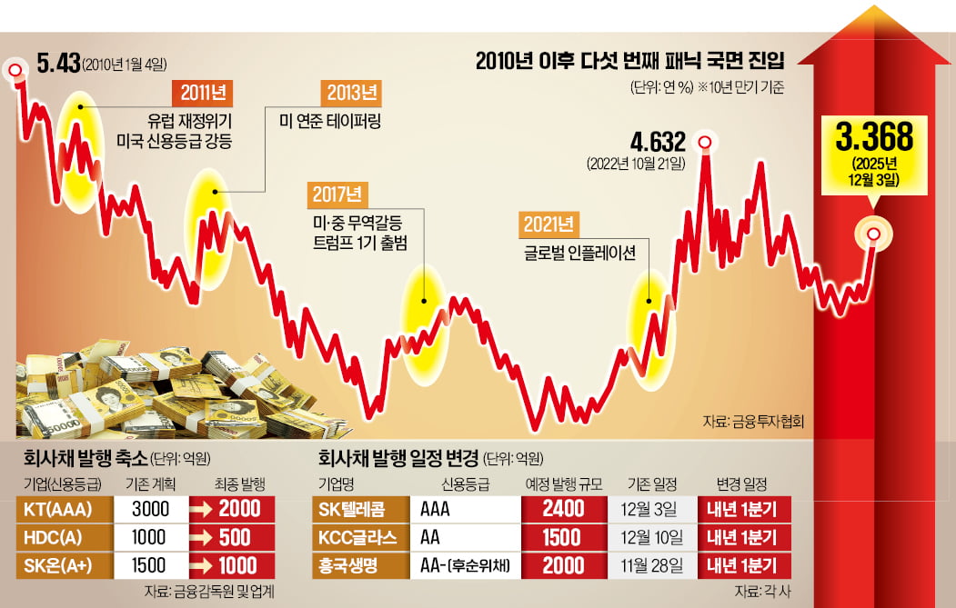 โถ๋ง์ผ์ธ์ฌ์ดํธ 12์ 3์ผ ์คํ 5์ 15๋ถ ๋ฏธ๊ตญ ์ผ๋ณธ์ ๋น๋กฏํด ์ ๋ฝ ์ฃผ์๊ตญ์ ์ฑ๊ถ ๊ธ๋ฆฌ๊ฐ ์์ ์ธ๋ฅผ ๋ณด์ด๋ ๊ฐ์ด๋ฐ ํ๊ตญ ๊ตญ๊ณ ์ฑ ๊ธ๋ฆฌ๋ง ์ง๋ ํ ๋ฌ ๋ฐ ์ฌ์ด 0.6%ํฌ์ธํธ ๊ธ๋ฑํ๋ค. 2010๋ ์ดํ ๊ตญ๋ด ์ฑ๊ถ ๊ธ๋ฆฌ ์์น(์ฑ๊ถ ๊ฐ๊ฒฉ ํ๋ฝ)์ ์ฃผ์์ธ์ด ๋์ฒด๋ก ๋ฏธ๊ตญ ๊ธ๋ฆฌ์ ์ฐ๋๋ ๊ฒ๊ณผ ๋ฌ๋ฆฌ ์ด๋ฒ์ ๋ํ๋ก ๊ธ๋ฆฌ ๊ธ๋ฑ ์์์ด ๋ฒ์ด์ง๊ณ ์๋ค. ์ฌ์ ๋ถ๋ด ์ฌํ์ ๊ธ๊ฒฉํ ์ํ ์ฝ์ธ, ๋ถ๋์ฐ ๊ฐ๊ฒฉ ๊ธ๋ฑ ๋ฑ ๋ค์ํ ์์ธ์ด ๋ณตํฉ์ ์ผ๋ก ์์ฉํ๊ณ ์๋ค๋ ๋ถ์์ด ๋์จ๋ค. โ๊ตญ๊ณ ์ฑ ๊ธ๋ฆฌ ๊ธ๋ฑ ์ ์ํ ์ด๋ฏธ์ง ํฌ๊ฒ๋ณด๊ธฐ 3์ผ ๊ธ์ตํฌ์์ ๊ณ์ ๋ฐ๋ฅด๋ฉด ์ด๋ฒ ์ฑ๊ถ ๊ธ๋ฆฌ ์์น์ ๋ฐ๋ฅธ ํฌ์์ ์์ค์ ์ด๋ ๊ธฐ์ค -6.8%๋ก 2010๋ ์ดํ ๋ค์ฏ ๋ฒ์งธ๋ก ํฌ๋ค. ์ต๊ทผ 2๋ ๊ฐ ๊ธ๋ฆฌ๊ฐ ๊ฐ์ฅ ๋ฎ์์ ๋ ์ฑ๊ถ์ ๊ตฌ๋งคํ ํฌ์์๊ฐ ๊ธ๋ฆฌ ์์น์ผ๋ก ๋ณธ ์ต๋ ์์คํญ์ ๋ํ๋ด๋ ์ฑ๊ถ ์ต๋์์ค๋ฅ (MDDยทmaximum drawdown) ๊ธฐ์ค์ด๋ค. 2020๋ ์ด์ ์๋ 2011๋ -6.8%, 2013๋ -8.0%, 2017๋ -10.3% ๋ฑ ๊ธ๋ก๋ฒ ๊ธ์ต์๊ธฐ, ์ ๋ฝ ์ฌ์ ์๊ธฐ ๋ฑ์ ์ฌํ๋ก ์์ค์ ๋ดค๋ค. ์ด๋ฒ ์ฑ๊ถ ์์ค์ ํ๊ตญ ์์ฅ์์๋ง ๋ฒ์ด์ง๊ณ ์๋ค. ์ง์ ์ ์ธ ๊ณ๊ธฐ๋ ํ๊ตญ์ํ์ ํตํ์ ์ฑ ๋ถํ์ค์ฑ ํ๋๋ค. ์ด์ฐฝ์ฉ ํ์ ์ด์ฌ๊ฐ ์ง๋๋ฌ 12์ผ ์ธ์ ์ธํฐ๋ทฐ์์ ํ โ๋ฐฉํฅ ์ ํโ ๋ฐ์ธ์ ๊ธฐ๋ฆ์