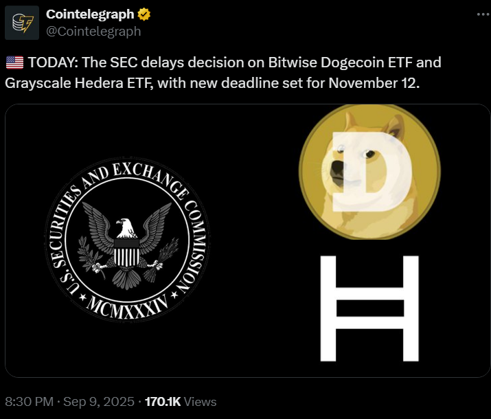 ๊ด๋ จ: Dogecoin ETF๋ ์ํธํํ ์ฐ์ ์ด ํฌ๊ธฐ๋ฅผ ์์ฉํ๋๋ก ์๋ฐํฉ๋๋ค.