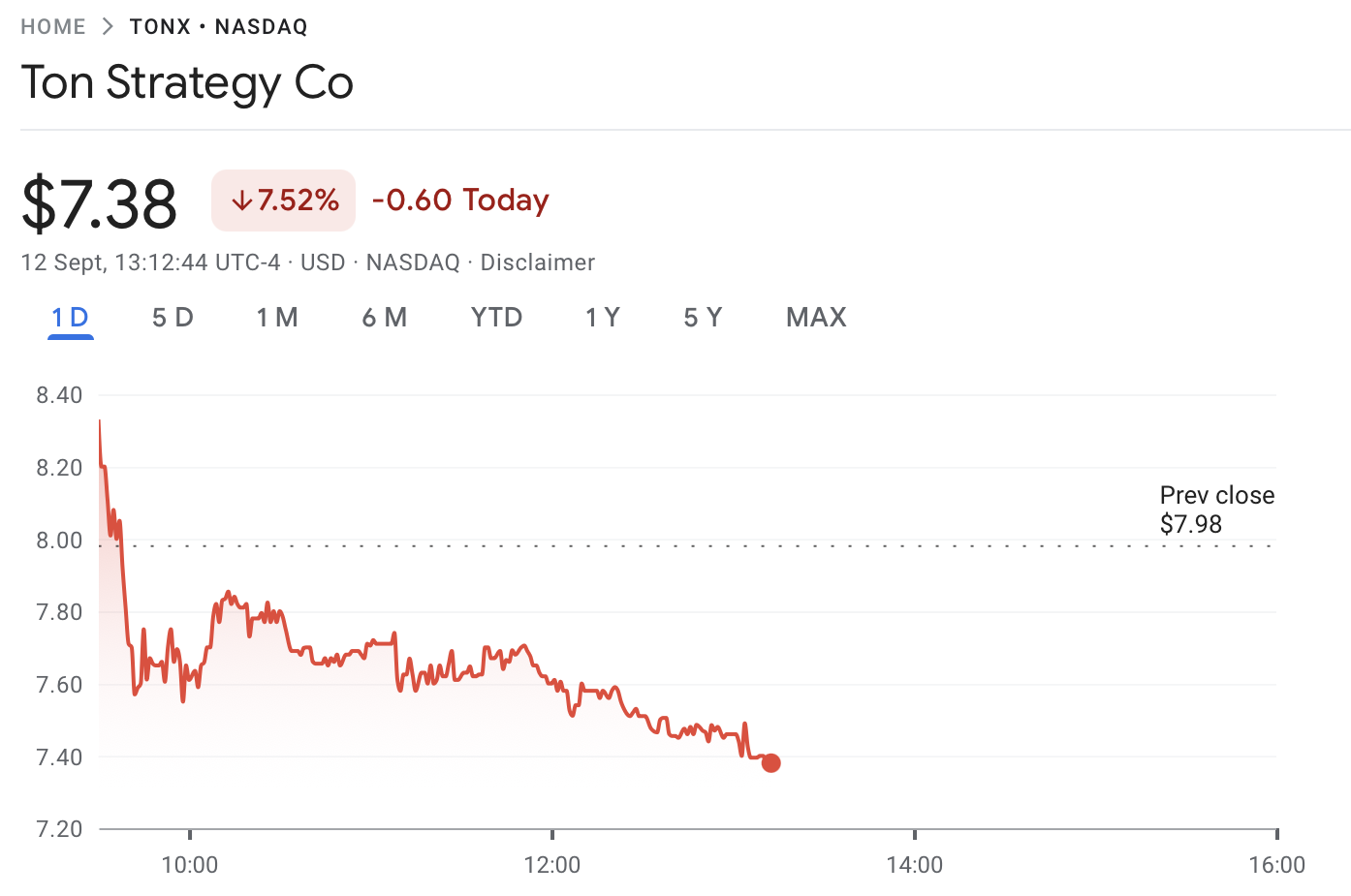 ๊ธˆ์š”์ผ TON Strategy Company ์ฃผ๊ฐ€. ๊ทผ์›: ๊ตฌ๊ธ€ ํŒŒ์ด๋‚ธ์Šค